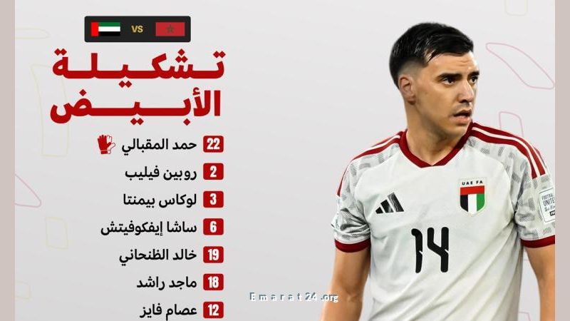 الظنحاني وفايز يقودان التشكيلة الأساسية للإمارات ضد المغرب