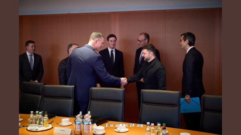 اجتمع زيلينسكي مع المبعوثين الأمريكيين في محادثات استضافها المستشار الألماني فريدريش ميرتس، حيث ألقى ميرتس تعليقات مقتضبة قبل أن يترك الجانبين للتفاوض. كما يُتوقع وصول قادة أوروبيين آخرين لألمانيا لإجراء محادثات يوم غد الاثنين.