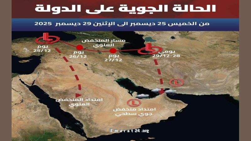 فرصة لأمطار متفرقة وطقس معتدل في الإمارات 25-29 ديسمبر