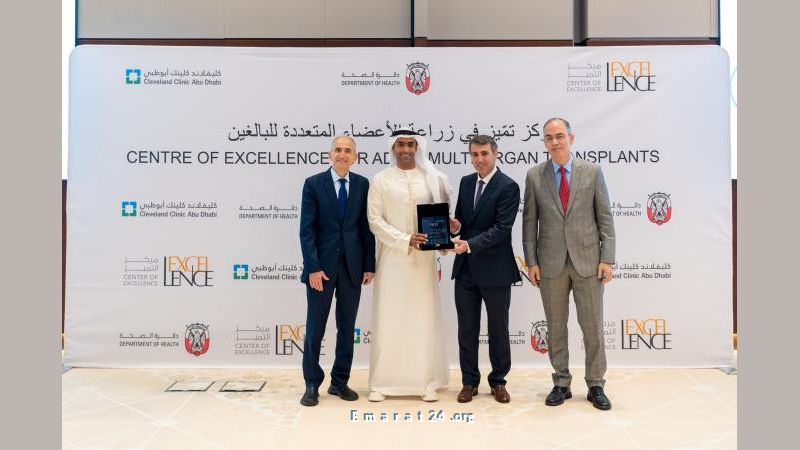تم تسليم درع مركز التميُّز خلال احتفالية حضرها رئيس دائرة الصحة - أبوظبي منصور إبراهيم المنصوري، ووكيل الدائرة الدكتورة نورة خميس الغيثي، إلى جانب الرئيس التنفيذي لمستشفى كليفلاند كلينك أبوظبي الدكتور جورج-باسكال هبر وعدد من خبراء زراعة الأعضاء.