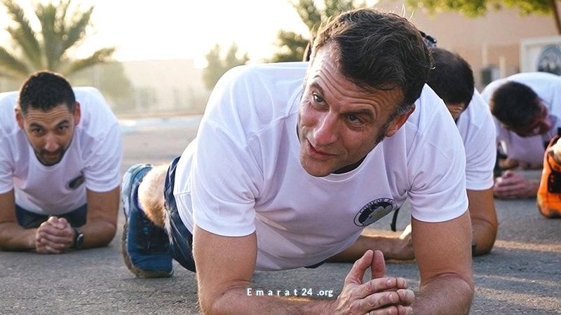 وفي سياق هذه الاستراتيجية، نشر قصر الإليزيه فيديو لماكرون وهو يقوم بتمارين رياضية، رفقة بعض الجنود الفرنسيين وبإشراف مدرب لياقة شهير، محاولاً تعزيز صلته بالانضباط العسكري والقدرات الجسدية.