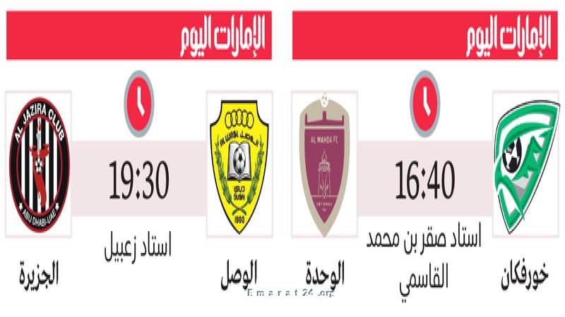 يحلّ فريق الوحدة، بلا هزيمة في آخر 29 مباراة في جميع المسابقات، ضيفاً ثقيلاً على خورفكان عند الساعة 16:40 اليوم على استاد صقر بن محمد القاسمي، ضمن إياب الدور ربع النهائي لكأس رابطة المحترفين. يطمح الوحدة لتعزيز رقمه التاريخي، بينما يسعى "النسور" للتأهل إلى المربع الذهبي.