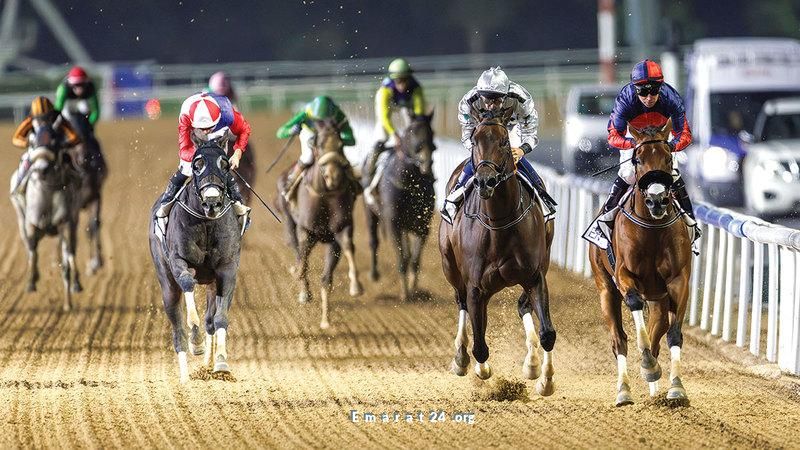 افتتحت الأمسية بسباق قوي للجياد العربية الأصيلة ضمن بطولة "آل مكتوم للتحدي"، وتمتد مسافتها إلى 1600 متر رملي. الجواد "مراد" المملوك لـ "ياس للسباقات" حقق الفوز اللافت تحت قيادة الفارس سلفستر دي سوسا، محرزا الزمن 1:45.92 دقيقة بفارق ضئيل عن الجواد "مبيد".