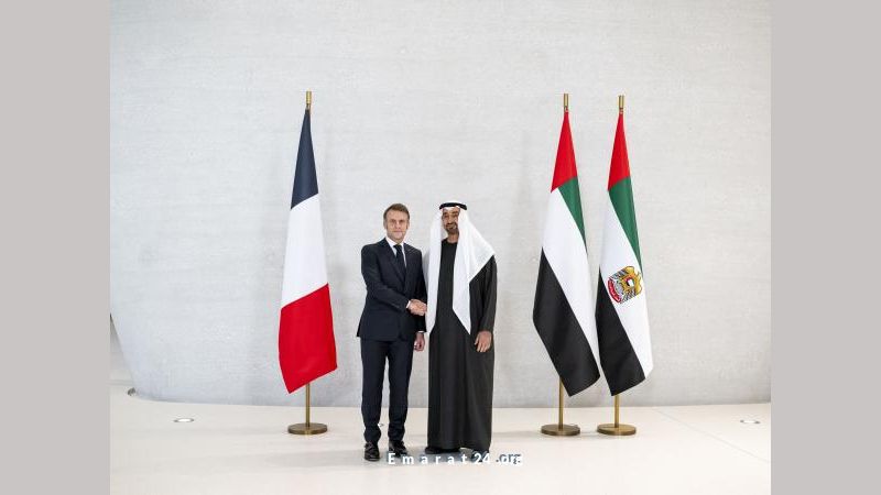 التقى صاحب السمو الشيخ محمد بن زايد آل نهيان، رئيس الدولة "حفظه الله"، اليوم، برئيس الجمهورية الفرنسية إيمانويل ماكرون خلال زيارته إلى الدولة.