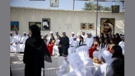 خالد بن محمد بن زايد يتفقد معرض "وطني إبداعي" للطلاب بمتحف اللوفر أبوظبي