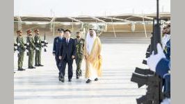 ذياب بن محمد بن زايد يرحب برئيس كوريا في واحة الكرامة